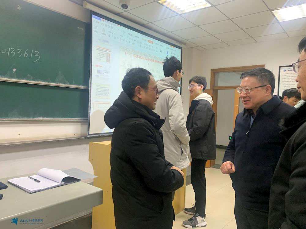 在教务处负责人的陪同下,党委书记罗嗣海来到了教学主楼C208教室,听取了马克思主义学院于东老师的《马克思主义基本原理概论》。罗嗣海认真听着任课老师的讲解,并不时作着笔记。利用课间,罗嗣海与任课老师亲切交谈,对其授课成效表示肯定,并寄语全体教师要注意把握上好一“堂”课和上好一“门”课的关键所在,在讲授知识的同时,要注重提升同学们的综合素质、培养思考问题的方法,助力青年学生真正学懂、弄通、会用,从而提高学校教育教学质量和水平。