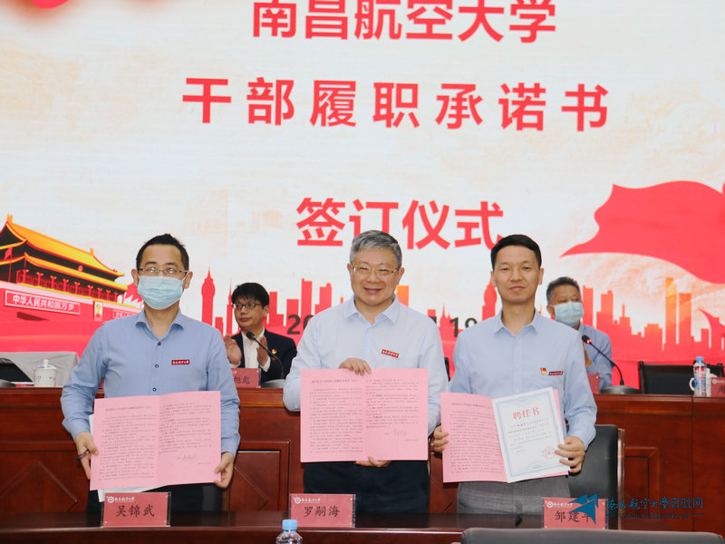 会上,环境与化学工程学院和经济管理学院党政负责人作为学院代表与党委书记罗嗣海签订了2022-2024年学院目标管理责任书;飞行器工程学院院长和研究生院负责人作为处级干部代表与党委书记罗嗣海签订了干部承诺书。