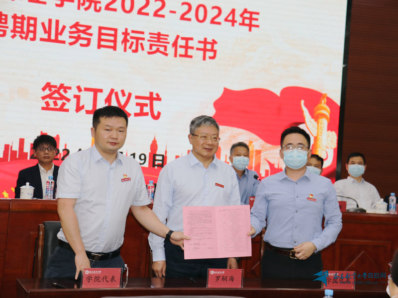 学校举行目标管理学院2022-2024聘期业务目标责任书暨干部履职承诺书签订仪式