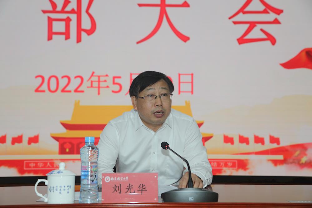 刘光华就加强学校领导班子建设和加快学校事业发展提出三点意见:一是以政治建设为统领,加强党对学校的全面领导。始终坚持社会主义办学方向,坚持为党育人、为国育才;始终坚持党委领导下的校长负责制和民主集中制;始终坚持正确用人导向,加强干部队伍建设。二是以争创一流为目标,推动学校高质量跨越式发展。坚持引育并举,深入实施人才强校战略,围绕学校优势学科和特色学科发展需求,加大对学科带头人及重点专业高层次人才引进力度;加强内涵建设,提升人才培养质量,强化资源整合,争取在一流学科建设、国家级平台和奖励上有新的突破,力争早日获批博士学位授权单位;发挥特色优势,服务区域经济发展,以服务江西经济社会高质量跨越式发展和美丽中国“江西样板”建设为己任,为全面建设“六个江西”作出新的更大贡献。三是以廉洁自律为底线,巩固风清气正政治生态。学校党委要落实全面从严治党主体责任,党委书记切实履行好第一责任人的职责,领导班子成员要压实一岗双责,领导干部坚持把纪律挺在前面,时刻做到心中有责,心中有戒。