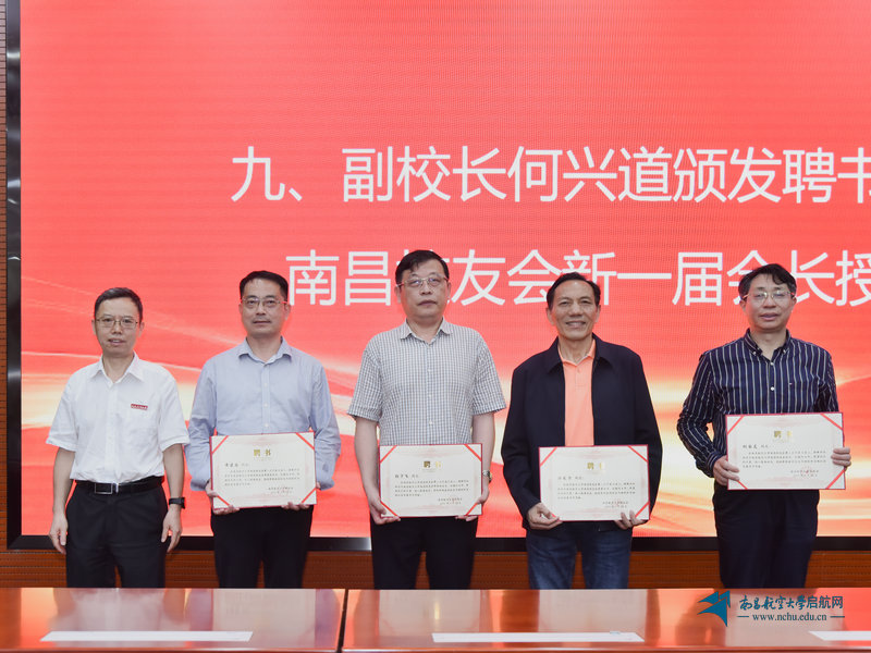 会议审议通过了南昌校友工作站的工作人员名单,校友办负责人宣读了新成员任命书。何兴道为工作站的校友代表颁发聘书,并为新任命的负责人胡国友授旗。