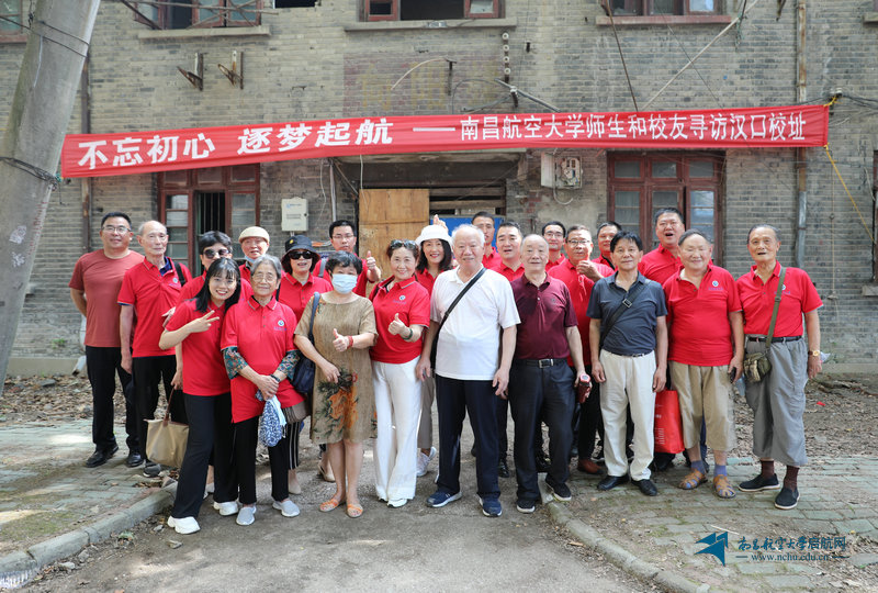 让人感动的是,当我校首届教师代表、今年已经94岁高龄的冀殿英老师和1952级学生代表、88岁高龄的胡健得知学校要寻访旧址,他们便满怀欣喜地从南昌赶到了汉口。目睹70年前曾经住过一年半的宿舍楼,冀老高兴得合不拢嘴,饶有兴致地讲述了他进校任教后与这栋楼的故事。在场的师生和校友们深情地凝望着这栋唯一保存下来的旧址,不时拍照合影,不时环视瞻仰,不时细致观察,不时驻足沉思,一块块青砖、一片片蓝瓦、一条条旧痕、一段段故事在两位历史见证者和参与者的讲述下,让全体在场人员仿佛身临其境地回到了建校时期,一起回忆学校创建的历史画面,一起回味学校发展的峥嵘岁月,一起回顾建校时航空报国的初心。与旧址临别时,有位年长的校友动容地说:“很激动啊!来到这里,我的思想在更高的境界上突然升华了!”