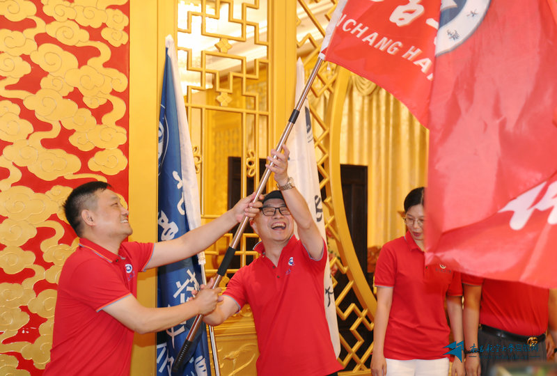 学校旧址参观结束后,全体校友师生回到室内会议现场,举行校庆倒计时100天暨“七秩芳华 逐梦远航”校旗传递活动启动仪式。仪式在激昂奋进的校歌声中拉开帷幕,副校长何兴道代表学校发表了热情洋溢的致辞。他指出,这次邀请大家回到学校初创的地方举办活动,不仅是为了纪念那些为学校的创建而付出辛勤劳动的师生,更是为了进一步坚守我们航空报国、航空强国的初心与使命。他强调,校旗传递活动不仅是70周年校庆祝福的传递,更象征着学校的精神文化、初心使命的传承;希望全国乃至全球校友积极参与校旗传递活动,在活动中进一步加深情感、凝聚力量、弘扬精神、激发动力、鼓足干劲,为建设高水平大贡献母校奉献更多智慧和力量。