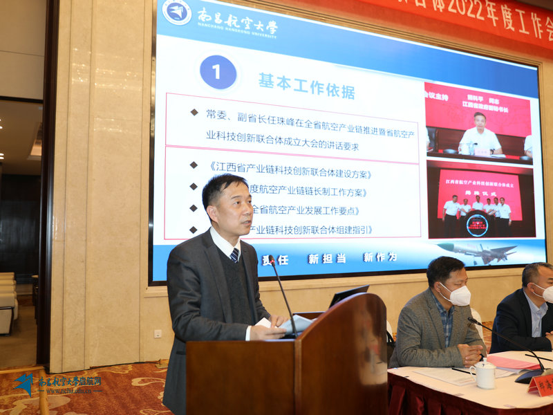 南昌航空大学校长卢超作《江西省航空产业科技创新联合体2022年度工作报告》