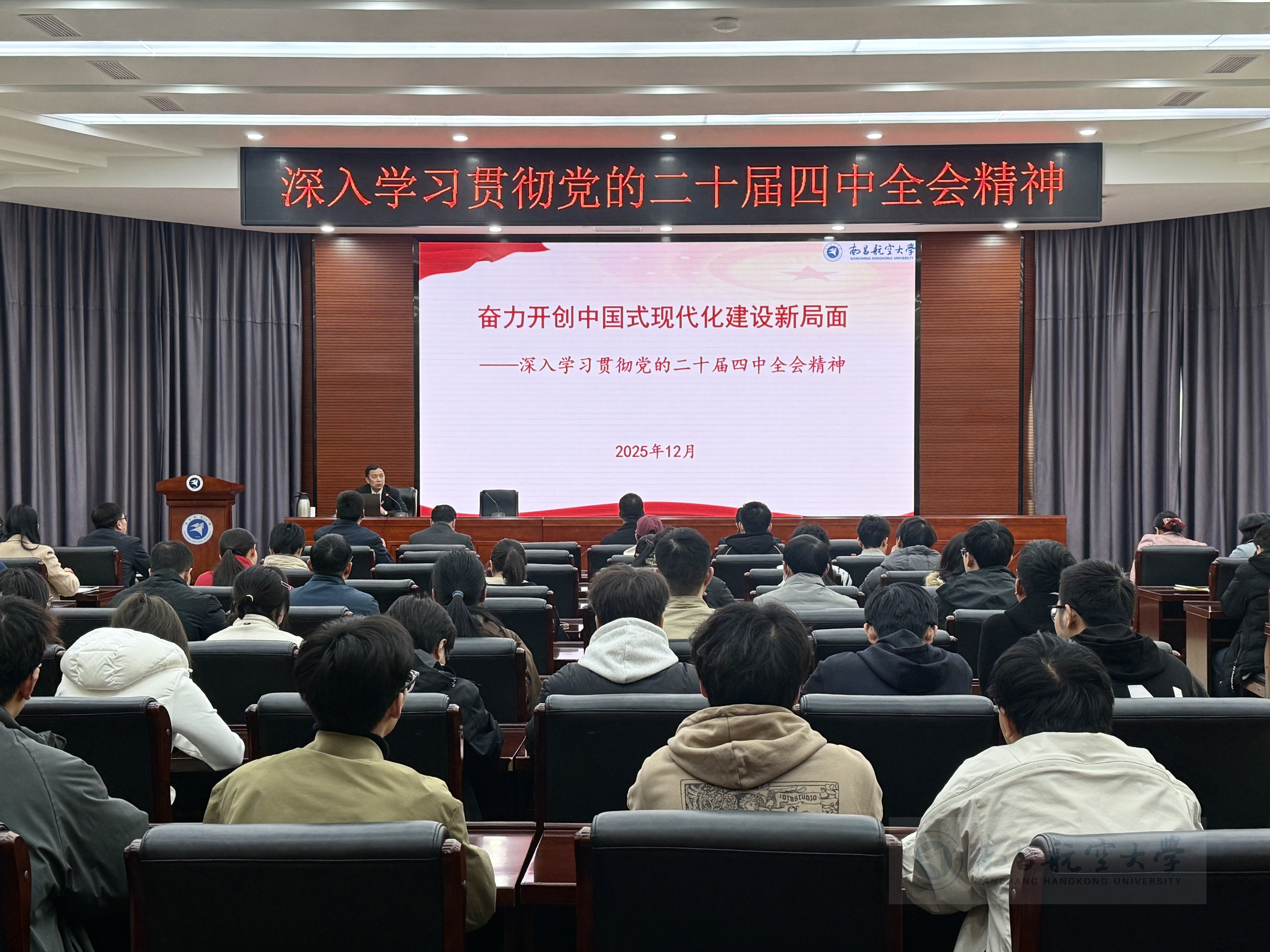 12月10日,党委副书记、校长卢超为仪器科学与光电工程学院、文法学院师生开展党的二十届四中全会精神专题宣讲。卢超围绕“十五五”规划《建议》精神,对全会精神进行了系统阐释,深入解读《习近平谈治国理政》第五卷的理论逻辑和实践要求,指出要充分认识深入学习贯彻党的二十届四中全会精神和《习近平谈治国理政》第五卷的重大意义,在强化学科建设、服务产业集群、建强科研平台、深化国际交流等方面持续发力。