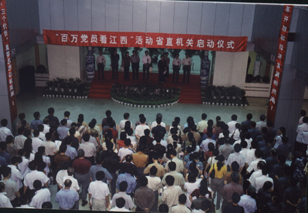 启航网讯 2003年6月27日上午9:00,党委组织部和宣传部组织我院60名师生党员代表参加由省委宣传部、省委组织部、省直机关工委主办的“百万党员看江西活动”启动仪式。活动仪式由省直机关常务副书记陈永华主持,省委常委、秘书长陈达恒作了重要讲话。启动仪式后,我院师生党员参观了高新大厦、艾溪湖、TCL彩电、万基药业、捷德智能卡、中机科技、金庐软件开发公司、泰豪科技等地,亲眼目睹了江西近两年发生的巨大变化,进一步坚定了师生为全面建设小康社会,实现江西在中部地区崛起而努力奋斗的信心。