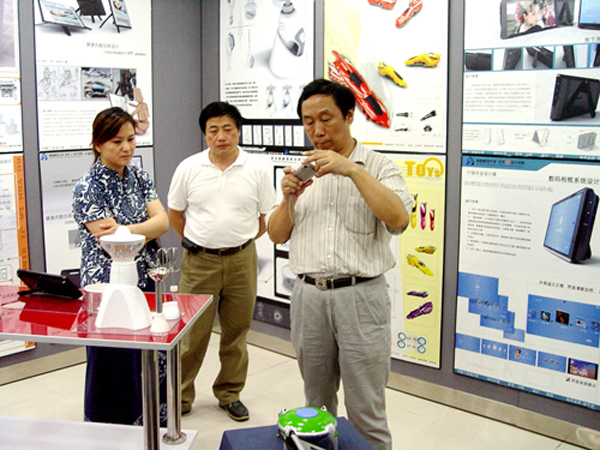 报告结束后,陈教授在艺术与设计学院院长李勤和艺术与设计学院副院长桑任新的陪同下参观了该院07届艺术设计、工业设计学生毕业设计展,他对毕业设计展的作品给予了充分的肯定。