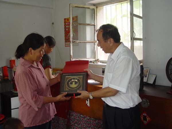 副校长夏立先、自动化学院副书记赵希圣一行四人来到乔树国烈士家中,送上了慰问信、慰问金和纪念品,夏立先副校长紧紧地握住乔树国烈士母亲的手,深情地说,乔树国毕业十年了,我代表学校来看望你们,他的英雄事迹深深地感染了全校师生,他是你们的骄傲,也是学校的骄傲,感谢你们养育了一个好儿子。乔树国母亲激动地说树国牺牲这么多年,学校也没有忘记;她代表全家对学校的慰问和深情关怀表示感谢。夏立先副校长还关切地询问了乔树国烈士家属的家庭生活情况,并向其家属简要介绍了学校近几年来特别是更名大学以来的发展情况。