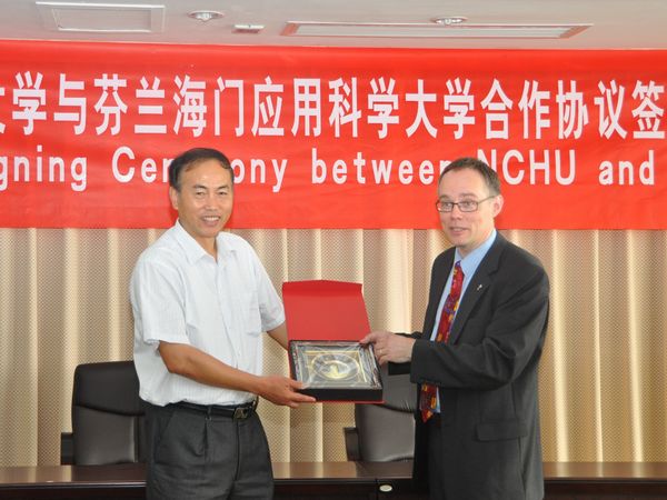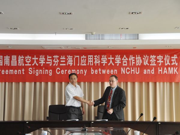 基于4月20日双方第一次会面时就学生交换、教师互派等方面的合作达成的共识,副校长刘志和教授和Pertti Puusaari先生分别代表两校签订了《中国南昌航空大学与芬兰海门应用科学大学合作协议》,并互相交换了礼物。