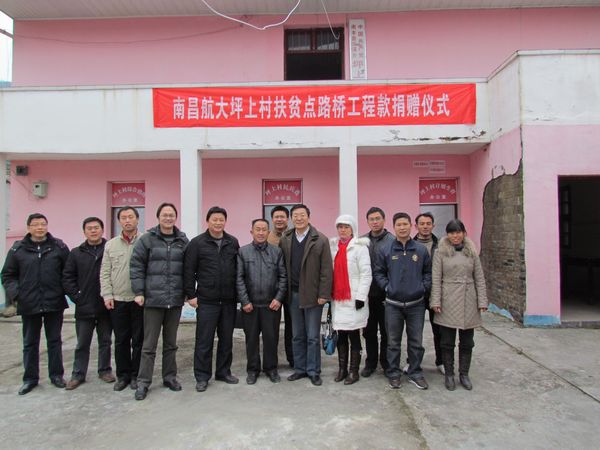 在坪上村委会,还举行了南昌航空大学坪上村扶贫点路桥工程款捐赠仪式。捐赠仪式上,副校长高益庆代表学校党委、行政对坪上村党支部、村委会进行了慰问,捐赠了扶贫点路桥工程款,并感谢南丰县扶贫和移民局,三溪乡党委、行政长期以来对我校扶贫工作的大力支持。三溪乡乡长黄小明概述了三溪乡和坪上村的基本情况,介绍我校对坪上村的多项扶贫利民工程:饮水改造工程;助学励志工程;卫生公厕改造及道路硬化工程;积极拓展香港斯图特基金会外来资金援助工程;积极为扶贫村小学增添教学设施和设备;开展小学师资培训工程;暖心工程,积极筹建老年活动室,并添置各种设备,每年专程年前前往当地慰问困难村民,带去慰问金和慰问品,送去新年祝福。坪上村村容村貌,村民的精神面貌焕然一新,他代表三溪乡党委、行政,坪上村全体村民感谢南昌航空大学多年来的无私帮助和大力支持。