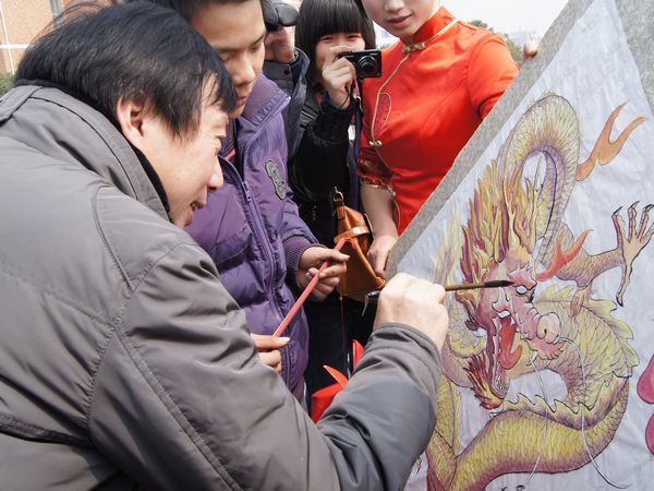 首先校党委副书记黄士安宣布第三届中国传统文化艺术节开幕,随后开幕式现场进行了中国龙服饰时装展示、龙旗的设计图案和书画作品展示。黄士安副书记也被学生的创作热情深深的感染了,当即以200元的价格收藏了学生的一幅书画作品(所有书画作品将在活动结束时以慈善拍卖的形式进行销售,所得拍款将资助我校家庭经济困难学生)。