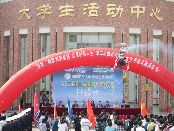 开幕式上进行了精彩的航模表演、腰鼓队表演以及游园会等活动,信工学院采用先进的航拍技术全程记录了整个过程。这是我校历史上首次在大型现场活动中使用航拍技术,彰显了我校的航空特色。据悉,在此后的一个多月的时间内,信工学院将陆续开展电子设计大赛、智能小车竞赛、自主产品设计竞赛、计算机软件和作品设计比赛、信息安全知识竞赛、科研育人系列讲座、科研论文评选等10项活动,争当学校大学生科技创新工作的先锋和尖兵。