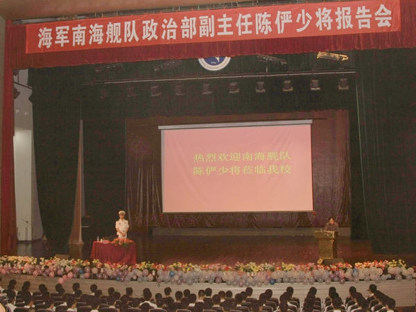海军南海舰队政治部副主任陈俨少将来校作报告