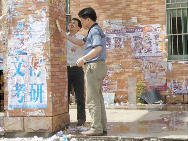 后勤集团全体党员开展义务劳动 整治校园垃圾广告