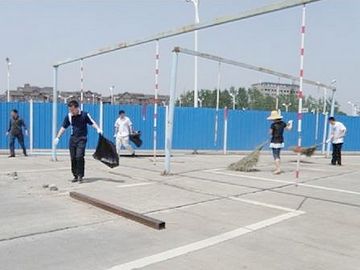 在学生一食堂,机关党支部和饮食服务中心党支部干部职工在集团总经理王先国、党委书记盛世发等集团领导带领下,对食堂墙面和立柱上的“牛皮癣”广告来了一场彻底的歼灭战,铁刷子、小铲子、喷水枪、抹布、梯子等“十八般”兵器悉数登场。同志们有的负责用喷水枪冲湿粘贴牢固的广告纸,有的负责用刷子和铲子把“牛皮癣”掀起,有的负责清扫撕下来的白色垃圾。尽管被污水湿透衣裤、尽管全身粘满碎纸糊,但同志们既不退却、也不言累,直到食堂所有的墙壁和柱子焕然一新。在南航驾校训练场上,驾校党支部的干部职工扫的扫、铲的铲、拣的拣、搬的搬,烈日下一派热闹的劳动场景。在修缮中心与前湖物业党支部劳动责任区域,干部职工们对路灯柱上和宣传栏内的白色垃圾广告、灌木丛里的枯草烂枝等进行了全面的清理清扫。