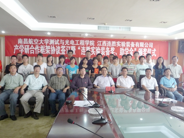 测试与光电工程学院自2009年成立以来,先后与江西连胜实验装备有限公司、山东济宁模具厂、杭州华安检测有限公司、汕头超声电子股份有限公司、汕头超声研究所、江西特种设备麻醉呼吸设备有限公司、南昌欣磊光电科技有限公司等七家公司签订了产学研校企合作协议,企业每年在学院设立的奖、助学金达10万多元。江西连胜实验装备有限公司是近年来国内光电行业脱颖而出的高新技术企业,AAA级重合同守信用企业,年销售额以26%的增长速度高速发展。公司全面采用欧州质量管理标准,以ISO9001(2000)品质标准贯彻制造全过程。公司已有了十年的发展履程,由成立初期的单一产品隔振光学平台,到现在拥有主动隔振平台、电动位移台、光具座、光电仪器应用系统六大系的产品,产品广泛应用于国内外光电企业、科学研院所及国内各高校国家重点实验。