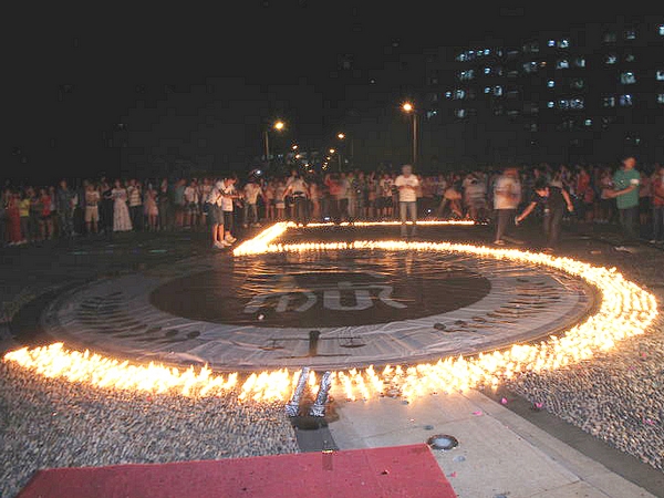 校党委副书记黄士安宣布南昌航空大学第六届传播文化节开幕,接着进行了各位领导嘉宾手印留念的环节。在喷泉广场中心,铺着文法学院的院徽,院徽被两千枝的蜡烛拼成的阿拉伯数字“5”所包围着。在唐星华副校长的引燃下,“5”字瞬间被点亮,四处还嵌着用荧光棒摆出的“生日快乐”四个字,熊熊火焰燃起的同时一束束璀璨的的烟花腾空而起,现场气氛顿时达到高潮。在斑斓的烟花中,南昌航空大学第六届传播文化节开幕式圆满结束。