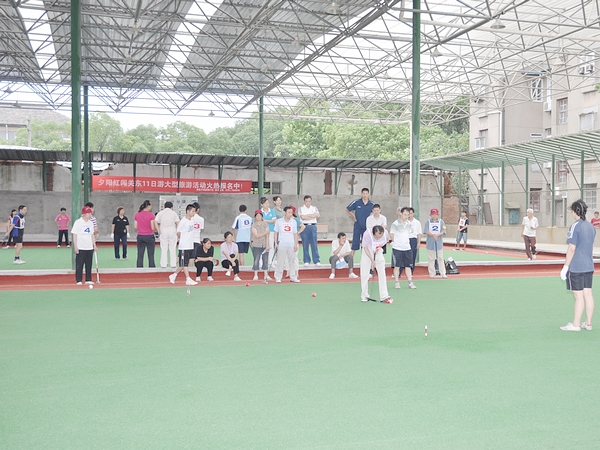 比赛共分四组、实行淘汰赛,分别在两个场地展开。在此次参赛队员中,最大的有七、八十岁的退休老人,最小的有十一、二岁的学校学生。队员之间团结协作,斗智斗勇,在规定时间内哪支队伍取得的分数最多那支队伍就获胜。经过一天的激烈争夺,最终体育学院社体队和南航附校并列获得第一。