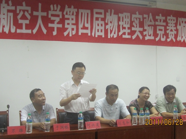 启航网讯 6月28日晚7点半,由校团委主办,大学物理实验中心、测试与光电工程学院承办的南昌航空大学第四届物理实验竞赛颁奖仪式在F栋教学楼315多媒体教室隆重举行。副校长刘志和、校长助理何兴道、校团委书记芦燕、测试与光电工程学院党委书记于润桥、副书记陆庆军、副院长龚勇清、测光学院光电信息工程专业的学生及其他学院部分参赛学生出席了本次颁奖仪式。颁奖仪式由大学物理实验中心主任万雄老师主持。