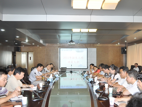 启航网讯 7月1日,学校召开了2011年招生工作动员大会。校长余欢、校党委副书记黄士安出席了会议,纪检监察室、宣传部、学工处、教务处、计财处、后勤处、医院、保卫处、信息中心、后勤集团、选培办等部门负责人,以及参与2011年招生工作的全体工作人员参加了会议。