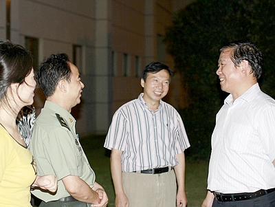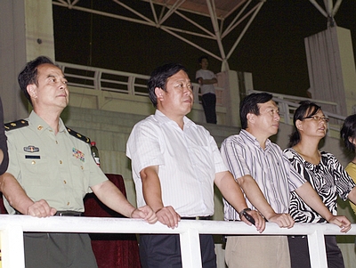 启航网讯 8月31日晚,省教育厅副厅长郭奕珊、七城会开幕式总导演邓锐斌、执委会大型活动部专职副部长李伟佳、张晓芳等一行在学校党委黄士安副书记、团委书记芦燕等陪同下,来到学校田径场亲切看望了我校近千名参与七城会开幕式演出的学生演员。
