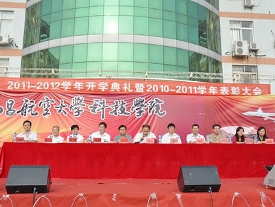 启航网讯 迢迢新秋夕,亭亭月将圆,中秋将至,阖家团圆,南昌航空大学科技学院2011级新生相聚一堂。本次开学典礼于9月11日16时在银三角校区主楼前广场举行。南昌航空大学副校长、科技学院院长刘志和,学院党委书记吴朝栋,常务副院长应保银,党委副书记、副院长刘敏,副院长王金林、向瑛,教师代表王云教授及各系、各部门部相关负责人,2011级新生辅导员和全体师生出席了开学典礼。开学典礼由党委副书记刘敏主持。
