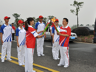 启航网讯 10月13日,全国第七届城市运动会圣火在南昌传递,这也是“七城会”火炬传递的最后一站。学校罗胜联副校长担任第45棒火炬手,见证了这一激动人心的时刻。上午八时,三名武警战士将七城会圣火火种护送至火炬传递南昌站现场秋水广场,南昌市市长陈俊卿点燃圣火盆,中国南昌SOS儿童村村长温优担任火炬传递南昌站首棒火炬手。大约九时左右,第44棒火炬手来到罗胜联副校长面前,罗胜联副校长健步上前,与第44棒火炬手进行交接,并击掌祝贺。点燃火炬后,罗胜联副校长沿着传递路线一路小跑,很快与第46棒火炬手再次进行交接。