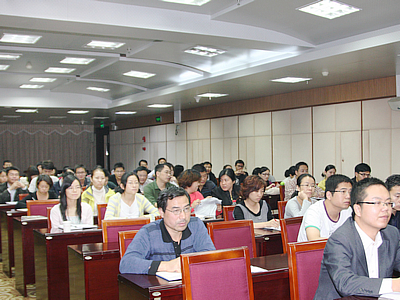 典礼举行前,余校长为学员们上了此次培训的最后一课。余校长以“做一名有思想的实干家”为题开始了精彩的课程。余校长从学校发展过程中,学生来源多样化、学生需求多样化、培养方式多样化、人才需求多样化的角度,分析了老师和学生的密切关系,老师和学生共同进步是学校发展的源泉;以学科建设、科研、产学研情况为重点,介绍了我校近年来各方面取得的长足进步,鼓励教师们要树立全面发展、终身学习、系统培养的观念,学会动手动脑、学会生存生活、学会做人做事,提高教学、科研、管理能力,成为一名业务过硬的教师。最后,余校长希望学员们能尽快地熟悉学校各方面的情况,早日融入到集体中来,为构建有充分尊严感的教师、对母校有充分自豪感的学生和有充分成就感的管理服务人员的和谐校园而努力。