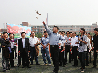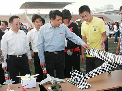 开幕式上,各位领导和来宾观看了由我校自主研发并在“挑战杯”全国大学生课外学术科技作品竞赛中获得二等奖的新型多功能倾转涵道无人机和由测试与光电学院研制的新型太阳能航拍飞机“擎天号”的飞行表演。开幕式后,校长余欢等学校领导参观了“飞鹰杯”优秀比赛作品。如KT板模型飞机定点投弹装置,KT板模型飞机低空路线飞行展示,无线电遥控电动直升机展示,并详细地询问作品原理及功能,余校长对我校学生在节能减排,绿色环保方面的表现赞不绝口,极大地肯定“飞鹰杯”的比赛成果,祝愿“飞鹰杯”越办越好。随后,学校领导还与同学们一起进行了手掷模型滑翔机及橡皮筋动力飞机模型的试飞。