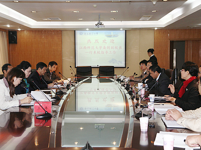 启航网讯 11月8日上午,江西师范大学副校长聂剑一行5人来校访问,副校长黎明、校长助理何兴道及党政办、人事处、教学评估中心、科技处等部门相关负责人在学校第二会议室与嘉宾进行了友好座谈。