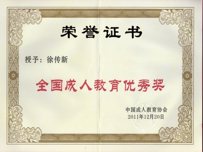 继续教育学院徐传新被评为全国成人教育优秀奖