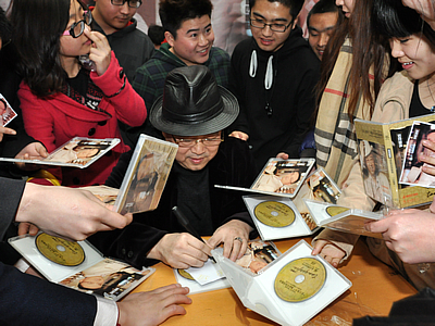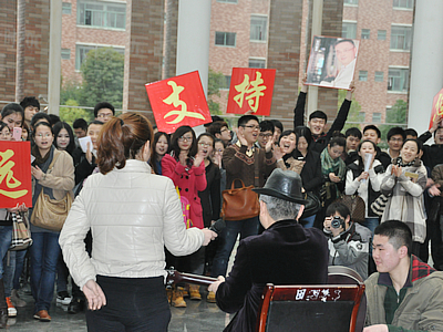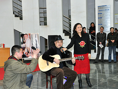 现场,谭跃军老师怀抱吉他边弹边唱并且给众多歌迷签名,极大的调动了学生热情,将活动推向高潮。