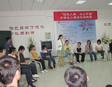 4月25日晚6点,文化节的首项活动“轻松人际,从心开始”大学生心理成长训练营在大学生心理健康教育与咨询中心的团体心理辅导室举行了开营仪式。