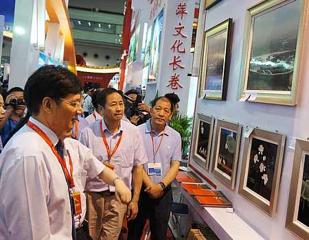 启航网讯 5月18日—21日,应南昌市政府邀请,我校艺术与设计学院设计艺术研究发展中心组织部分漆画作品代表南昌市参加了在深圳会展中心举办的第八届中国(深圳)国际文化产业博览交易会。展览期间,中共江西省委常委、省委宣传部部长姚亚平,中共南昌市委常委、宣传部长曾光辉及省市相关厅局的领导参观了江西展区,在我校设计艺术研究发展中心的展台参观时,省市领导对展示的漆艺作品给予了高度的评价,姚亚平指出:要大力支持江西漆艺的发展和传承,促进其产业化进程。