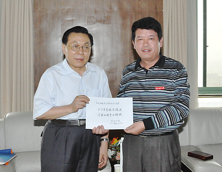 会见中,欧阳院士还向我校赠送了庆祝学校六十华诞的亲笔题词“六十年育航空栋梁 千秋业谱青史辉煌”和“嫦娥·探月”的纪念品。余欢校长也向欧阳院士赠送了代表学校三次创业历程的纪念银币。