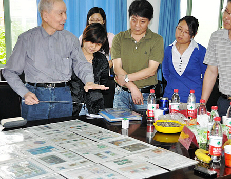 活动现场还举办了一个小型环境保护专题邮展。彭希仁老师多年来心系环保事业,他用集邮这一方式宣传环保理念,他坚持每年在世界环境日举办环境保护专题邮展。老一代环境工程专业教师对国家环保事业的贡献,对环境工程专业的热爱,深深感染着在场的每位师生。