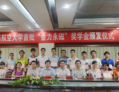 启航网讯 6月15日下午,在大学生活动中心213会议室,举行了南昌航空大学首批“金力永磁奖学金”颁奖仪式。学工处处长黄柯、材料科学与工程学院党委副书记徐勇、航空制造工程学院党委副书记袁宁、经济管理学院党委副书记温虹及22位获奖同学出席了颁发仪式,仪式由大学生资助中心副主任颜小雄主持。