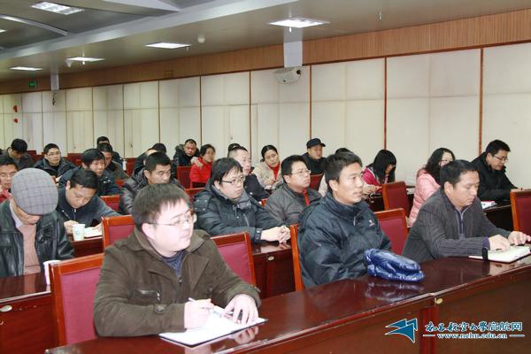 学校副校长唐星华在办公楼六楼视频会议室作了“学习贯彻十八大精神建设和谐平安校园”的十八大精神专题辅导报告。