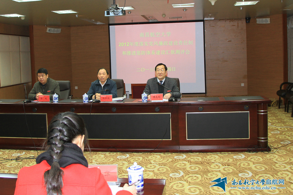 党委书记傅克刚代表学校介绍了2012年落实党风廉政建设责任制和惩防体系建设基本情况。