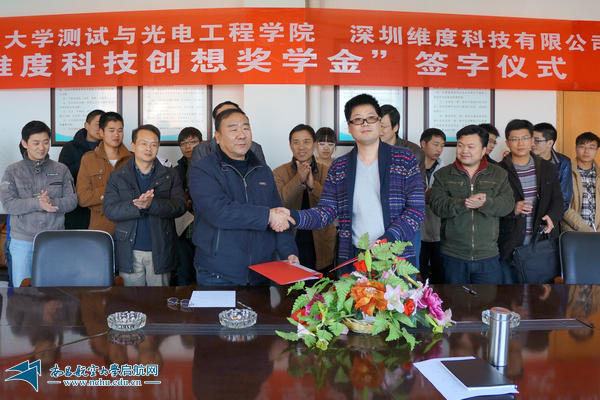 我校测试与光电工程学院与深圳维度科技有限公司签订了设立我校第一个学生“科技创想”奖学金的协议。