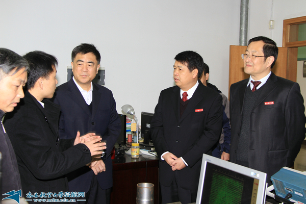 朱虹一行视察了我校无损检测技术教育部重点实验室、大学物理实验中心、工程训练中心、国防科技研究院、江西省持久性污染物控制与资源循环利用重点实验室、校史馆及校园环境建设。视察过程中,朱虹与师生及科研和管理人员亲切交流,深入了解有关情况,表示赞许和鼓励。在大学物理实验中心,朱虹饶有兴致地亲身体验了“激光琴”,并勉励教师应“教学相长”、“教研相长”;在国防科技研究院科技成果展厅,朱虹指示要重视科研成果转化工作,将高校的科研和学科优势转化为地方经济和产业优势。