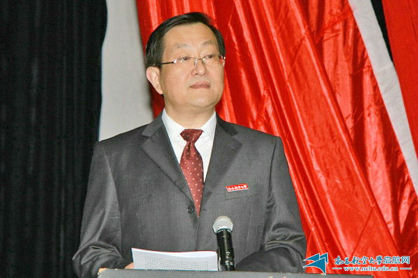 党委书记傅克刚代表学校党委作工作报告。(摄影 罗晖)