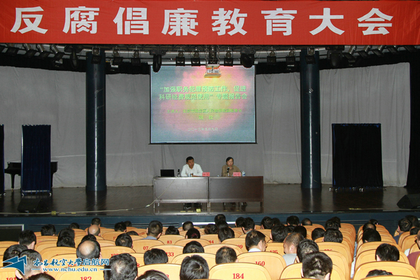 学校举行反腐倡廉教育大会,报告会由党委副书记黄士安主持。
