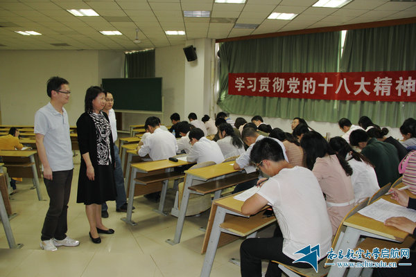 启航网讯 5月9日,由党委宣传部、纪检监察室、党委组织部组织的学习贯彻党的“十八大”精神知识竞赛在A100教室举行,全校各基层党委(总支)、直属党支部选送的代表80余人参加了比赛。考试期间校纪委书记王玉芝巡视了考场。