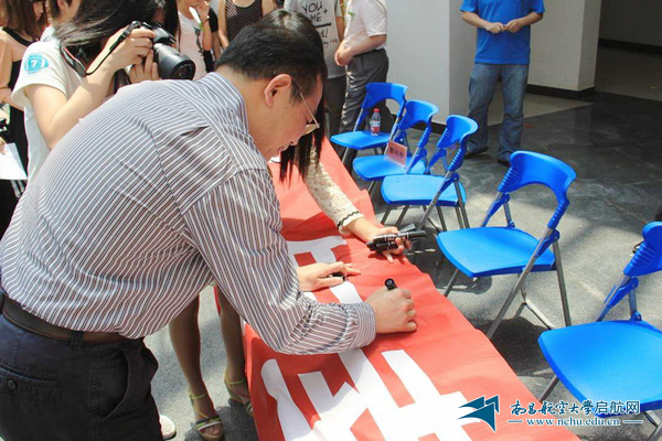 唐星华副校长在“我爱我,与幸福同行”的横幅上签名,以行动支持心理健康活动的开展。
