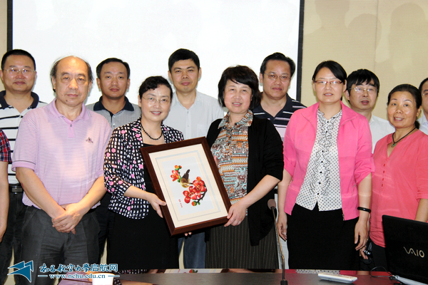 暨南大学副校长、工会主席饶敏一行来校调研工会工作。学校纪委书记王玉芝和学校工会与来访嘉宾座谈,相互交流经验。