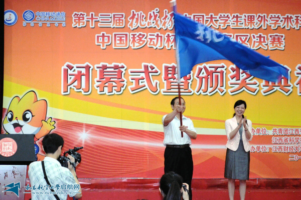 闭幕式上,唐星华副校长代表学校从团省委书记曾萍手中接过了挑战杯会旗。