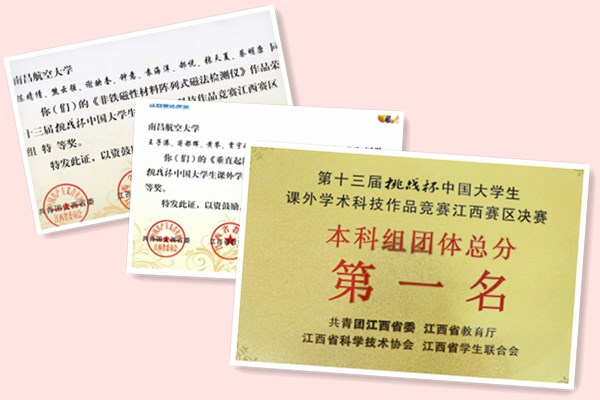 成绩的取得来之不易。首先,离不开学校领导的关心与支持。党委书记傅克刚为了给同学们创造更好的研究条件,多次到创新创业基地视察,并亲自协调,努力争取江西省人保厅的政策支持,为同学们孵化科研项目成果打开新的大门。当得知挑战杯校内评审会即将举行,余欢校长推掉其他的公务安排,欣然接受邀请,亲临现场指导。他提前调阅申报书、认真听取同学汇报、耐心提出修改意见,和其他专家一起,为同学们取得好成绩提供了强有力的技术指导。其次,校团委及学院团委按照学校指示,精心准备、科学谋划,顺利完成各项备战参赛工作。学校团委提前半年启动了备战参赛工作,并制定了周密详细的《第十三届挑战杯(江西赛区)竞赛南昌航空大学备战参赛方案》,根据方案要求,共有八个工作组,按照八个阶段的时间安排,稳步有序地推动工作,大到项目的遴选评审、小到答辩同学的发型服装,都有专人跟踪、专人指导、专人落实。