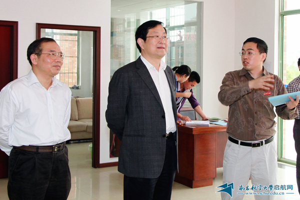 党委书记傅克刚大赛前到大学生创新创业基地调研。(摄影 罗晖)