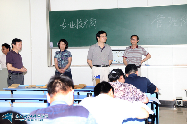 学校举行干部竞聘笔试,校党委书记傅克刚、副书记黄士安、纪委书记王玉芝在相关职能部门负责人的陪同下到考试现场巡考。